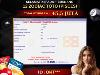 TOGEL88 JACKPOT TOGEL DI 12 ZODIAC TOTO (PISCES) Rp 45.500.000,- LUNAS