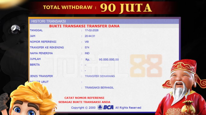 TOGEL88 mengucapkan selamat kepada user id : IND*** yang telah berhasil mendapatkan jackpot pada permainan SLOT DI SPIN ROYAL BLITZ. Kemenangan sebesar Rp 90.000.000,-. telah dibayarkan LUNAS oleh pihak TOGEL88 kepada pemilik user id setelah yang bersangkutan mengisi formulir withdraw. Proses pencairan dana berlangsung sangat cepat hanya dalam waktu 5-10 menit sudah berada dalam rekening pemilik user id. Bukti transfer yang dapat anda lihat adalah bukti SAH / VALID yang langsung di dapatkan melalui bukti transaksi dari Bank yang digunakan untuk pengiriman dana pada rekening pemilik user id. Terima kasih kami sampaikan kepada para pengguna setia TOGEL88 yang telah menggunakan situs kami, sebagai Bandar Terpercaya yang pastinya membayar semua kemenangan member hingga lunas. Apakah TOGEL88 PENIPU ? Reputasi “TOGEL88 TERPERCAYA” sudah sangat melekat. puluhan hingga ratusan ribu pengguna setia TOGEL88 tetap menggunakan situs terbesar dan terbaik di Indonesia ini. Hapus rasa was-was dan khawatir anda, kemenangan anda berapapun PASTI dibayarkan hingga lunas.