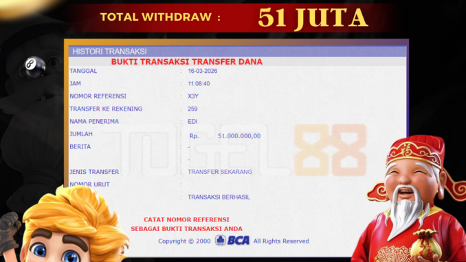 TOGEL88 mengucapkan selamat kepada user id : EDS*** yang telah berhasil mendapatkan jackpot pada permainan SLOT DI LUCKY NEKO. Kemenangan sebesar Rp 51.000.000,-. telah dibayarkan LUNAS oleh pihak TOGEL88 kepada pemilik user id setelah yang bersangkutan mengisi formulir withdraw. Proses pencairan dana berlangsung sangat cepat hanya dalam waktu 5-10 menit sudah berada dalam rekening pemilik user id. Bukti transfer yang dapat anda lihat adalah bukti SAH / VALID yang langsung di dapatkan melalui bukti transaksi dari Bank yang digunakan untuk pengiriman dana pada rekening pemilik user id. Terima kasih kami sampaikan kepada para pengguna setia TOGEL88 yang telah menggunakan situs kami, sebagai Bandar Terpercaya yang pastinya membayar semua kemenangan member hingga lunas. Apakah TOGEL88 PENIPU ? Reputasi “TOGEL88 TERPERCAYA” sudah sangat melekat. puluhan hingga ratusan ribu pengguna setia TOGEL88 tetap menggunakan situs terbesar dan terbaik di Indonesia ini. Hapus rasa was-was dan khawatir anda, kemenangan anda berapapun PASTI dibayarkan hingga lunas.